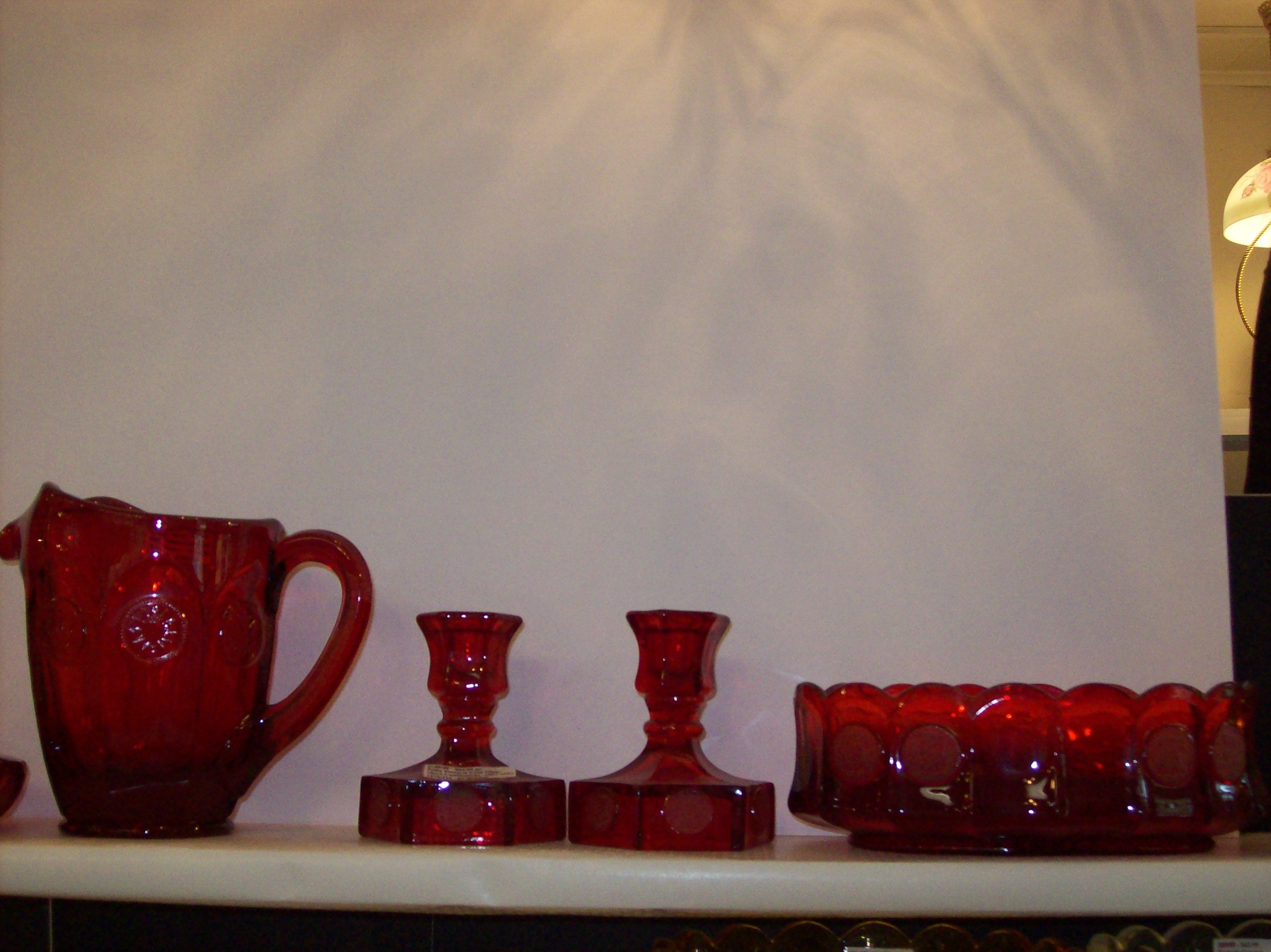 Red Pitcher, Pair Candlestick & Bowl |