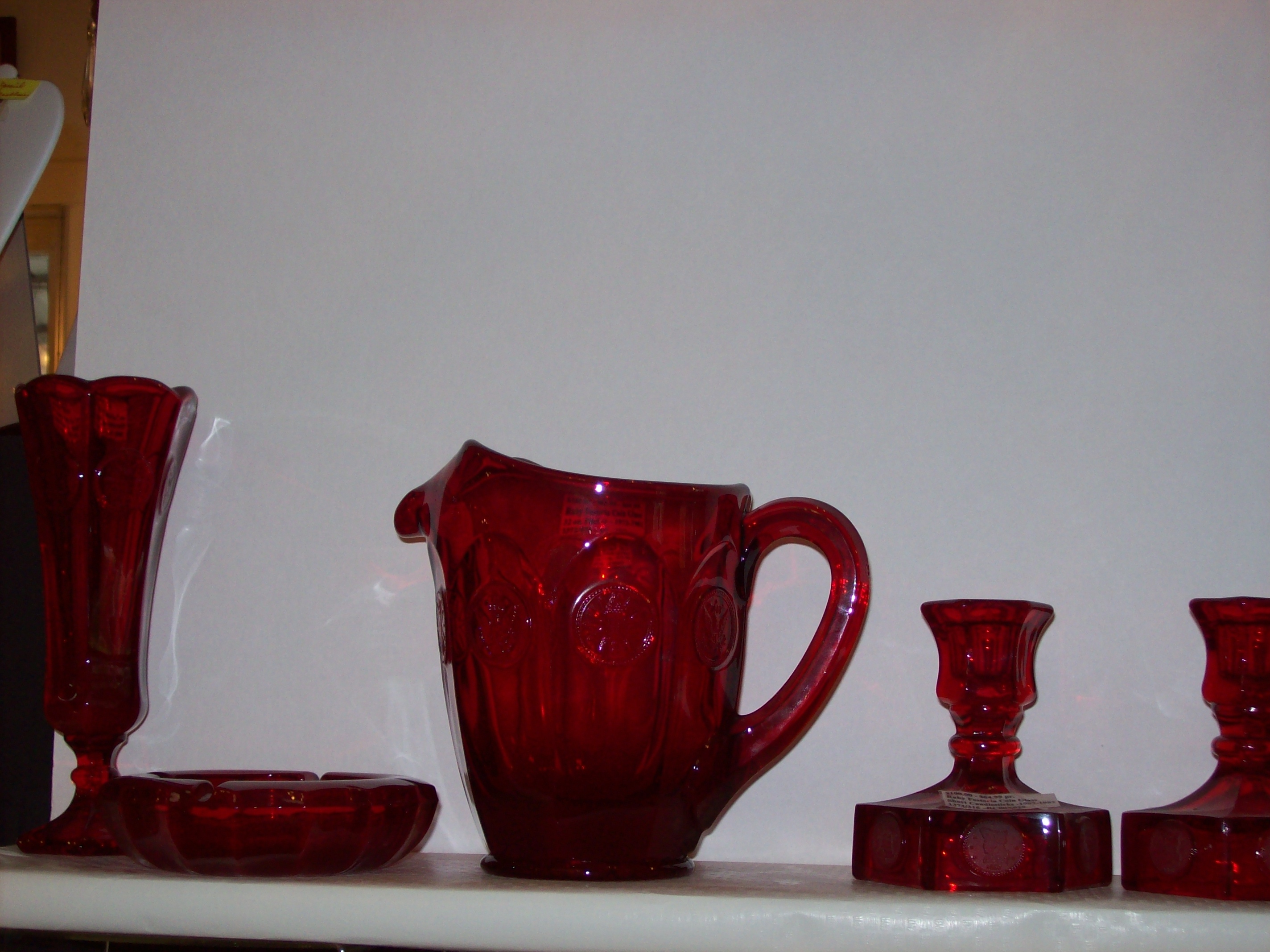 Red Coin Vase, Ashtray, Pitcher, Pair Candlesticks |