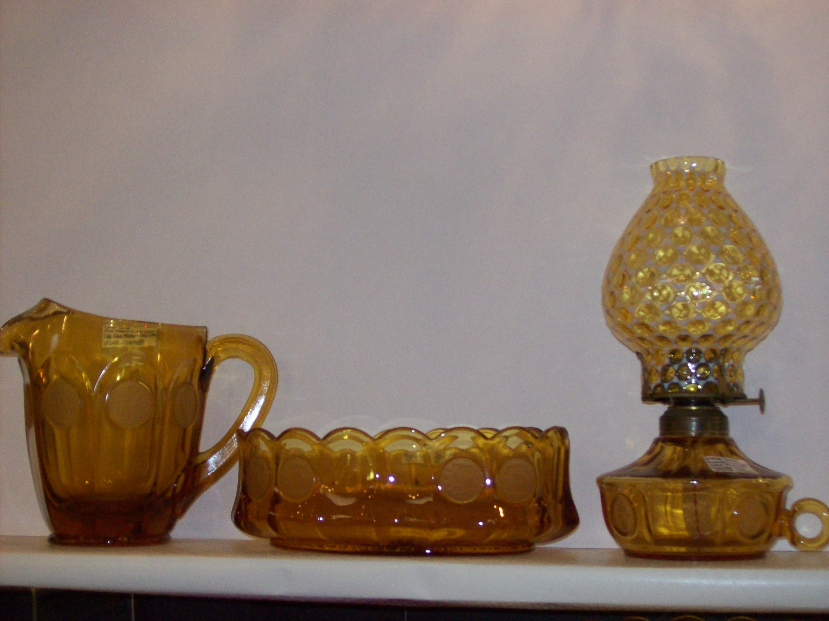 Amber Pitcher, oval Centerpiece Bowl & Lamp |