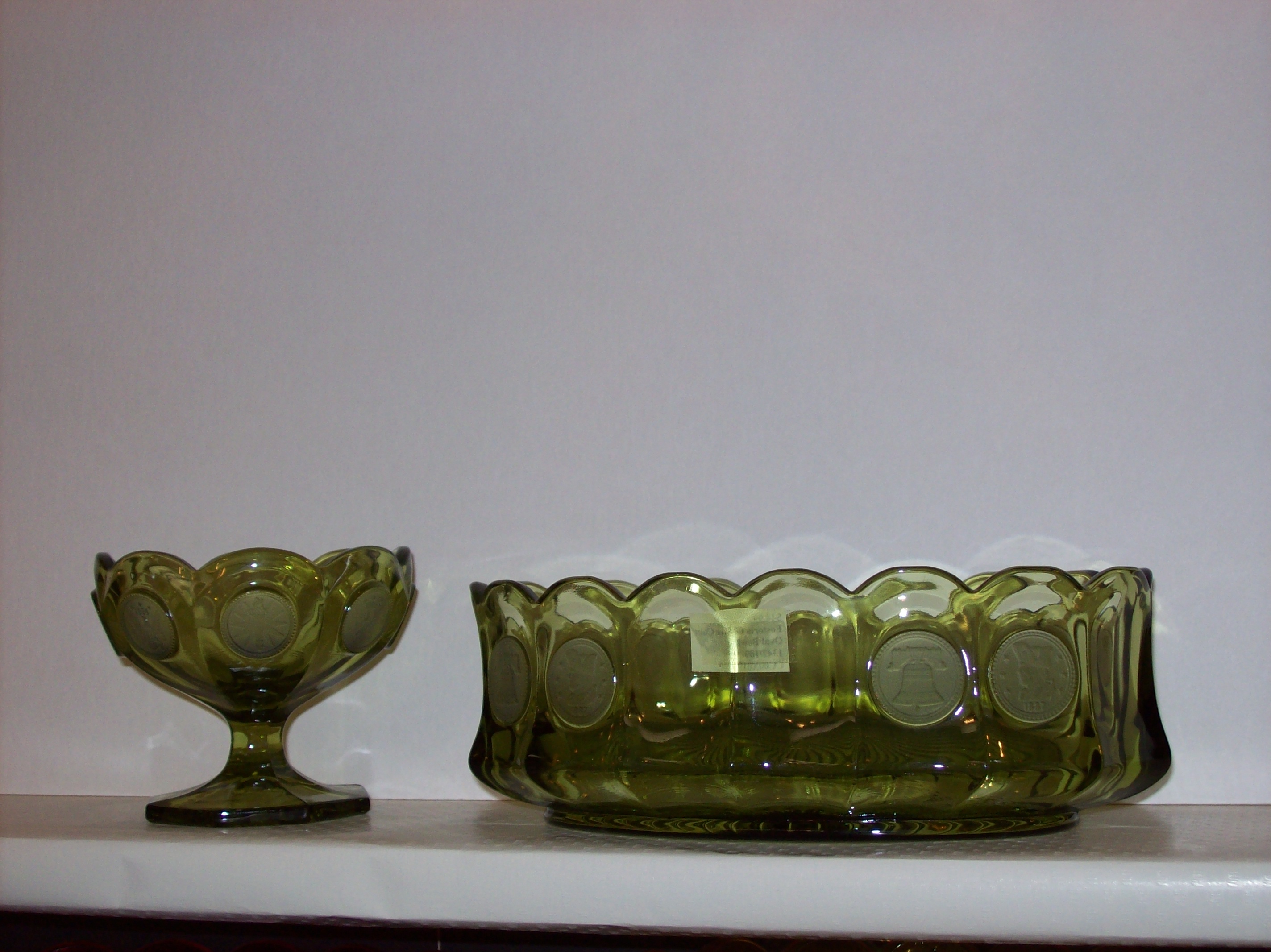 Fostoria Hard to find Emerald Green Wedding Bowl with lid. 1964-1965. Frosted coins date 1886. $99.95 |